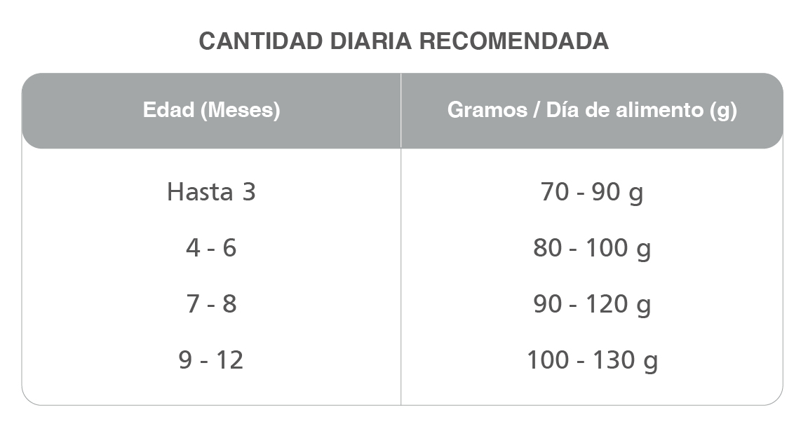 Harina de carne vacuna, harina de pollo, arroz, gluten de maíz, trigo, harina de germen de maíz, aceite de pollo, aceite de pescado (fuente de omega 3 y 6), leche en polvo, huevo en polvo, plasma bovino en polvo, hidrolizado proteico de pollo, pulpa de remolacha (fuente de fructo-oligosacáridos - FOS), levadura de cerveza, sal, carbonato de calcio, zeolita, fosfato de calcio, dióxido de titanio, dipropionato de amonio, ácido propionico, pirofosfato ácido de sodio, metionina, celulosa en polvo, ácido citrico, tocoferoles, taurina, extracto de yucca schidigera, vitaminas A, D3, E, K, B1, B2, B6, B12, ácido fólico, ácido nicotínico, ácido pantotenico, biotina, colina, minerales: zinc, hierro, cobre, yodo, manganeso y selenio.